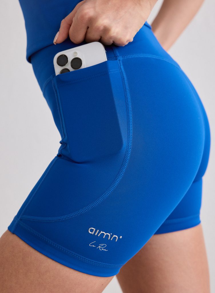 Running Midi Biker Shorts zijn gemaakt van een rekbare, gerecyclede stof. De shorts zijn voorzien van praktische zijzakken voor het opbergen van je telefoon of andere kleine items. De workoutshorts zijn vochtafvoerend, sneldrogend en ademend. De Azure Running Midi Biker Shorts hebben een metallische aim’n-badge op het been en siliconen randen aan de binnenkant voor een pasvorm die goed blijft zitten.