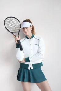 Het House of Gravity Bomber Jacket is uitgevoerd in een elegante Off-White basis met contrasterende groene accenten, wat zorgt voor een frisse, preppy uitstraling die zowel modern als klassiek oogt. Het jack is voorzien van een comfortabele pasvorm, subtiele zakken en hoogwaardige ritsen. De elastische boorden zorgen voor het kenmerkende bomber-silhouet en bieden bescherming tegen de wind, ideaal voor wisselvallige dagen.