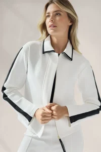 The Contrast Jacket is made from our smooth, soft and luxurious daywear fabric. A timeless, relaxed silhouette featuring front pockets and a golden statement zipper.